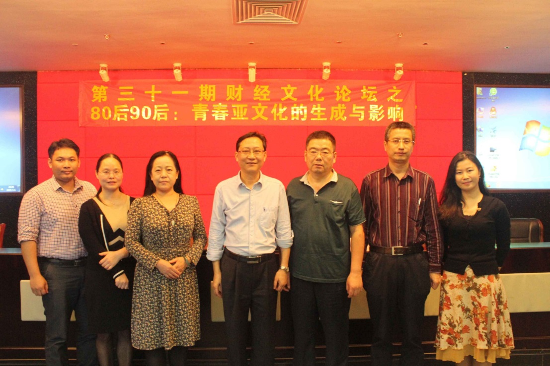 2015年4月1日晚,由财经传媒系主办的以“80后90后:青春亚文化的生成与影响”为主题的财经文化论坛在新电二楼国际会议厅隆重举行。本次论坛有幸邀请到广东财经大学人文与传播学院院长江冰教授担任主讲嘉宾。财经传媒系主任杨林教授、党总支书记宋艳坤、聂莉副主任、黄灯副主任等老师和财传系一百多名同学参加了本次论坛。